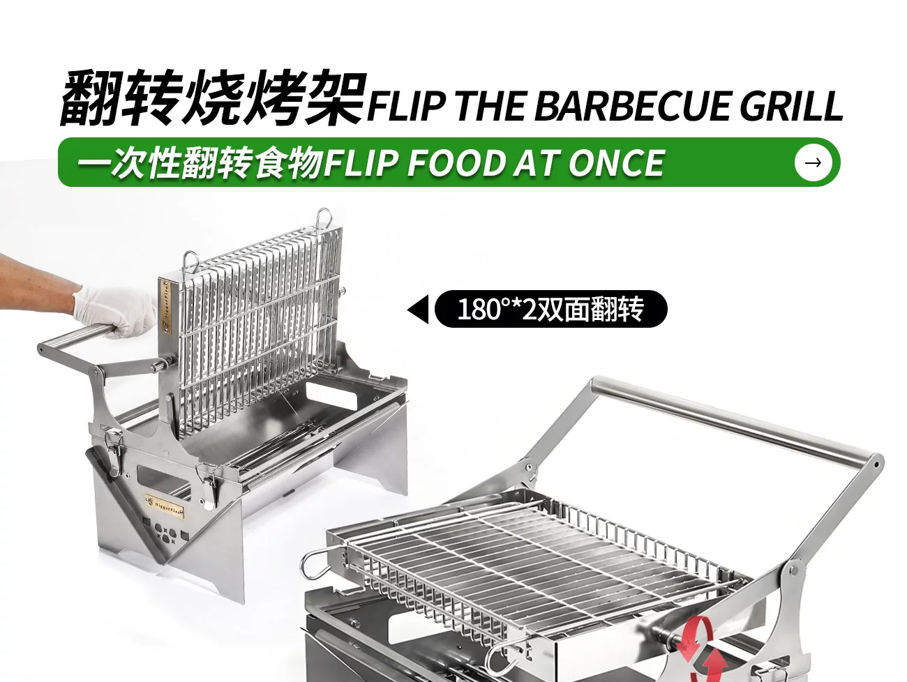 360° [Flip BBQ Grill] Outdoor Courtyard BBQ Grill Thickened stainless steel can be rotated to adjust the temperature